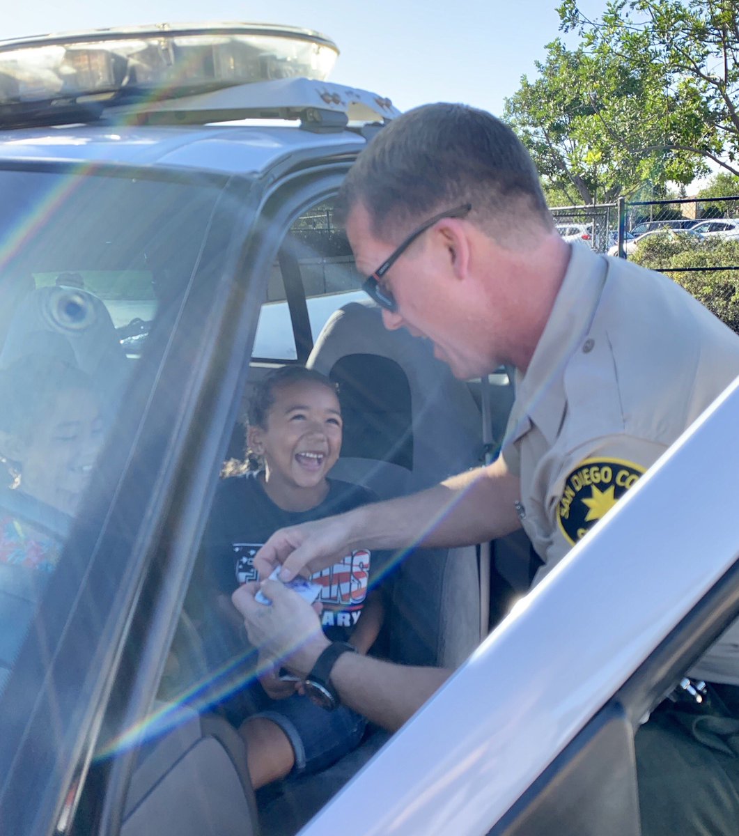 #InYourCommunity @SDSheriff Deputies Jaramillo & Vermillion stopped by Veterans Elementary School in Chula Vista for #RedRibbonWeek. As you can see, they made a lot of new friends.
