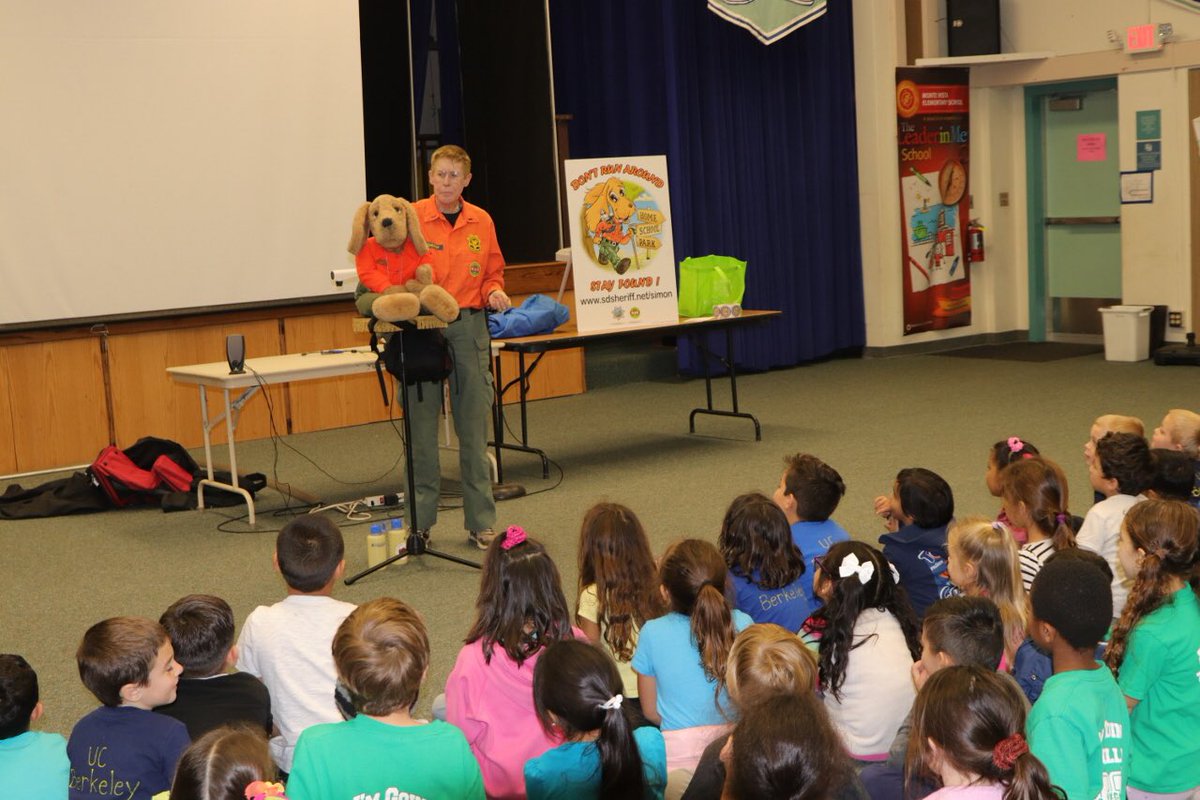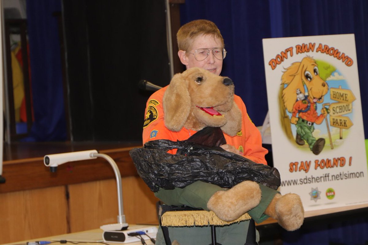 Simon the @SDSheriff Safety Bloodhound loves talking to kids about what to do if they ever get lost. This week, Simon and his Search and Rescue pals Pam Medhurst and Wishbone shared this message with students at Monte Vista Elementary in @cityofvista. http://sdsheriff.net/Simon .