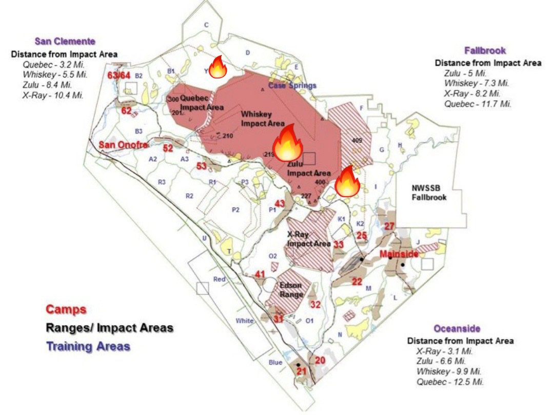 #Woodfire 7000 acres burned, 20% contained #IndiaFire 500 acres burned, 20% contained Range 706 Yankee impact area 500 acres burned. All fires remain in impact areas & will produce smoke the rest of the day w/ CPFD and partner agencies engaging. No threats on/off base. pic.twitter.com/CQdkcQ4NPd