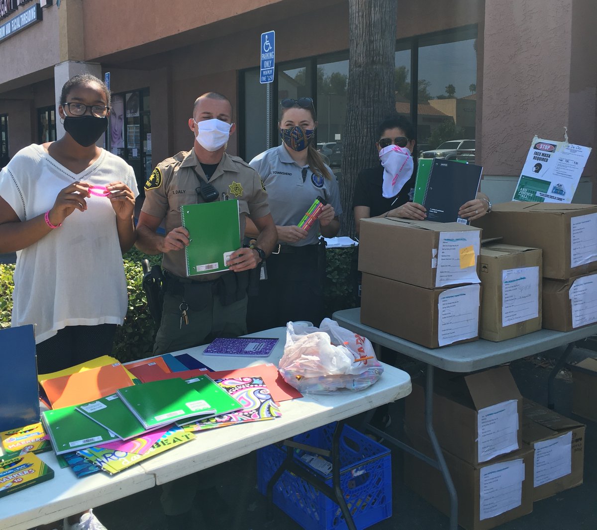 No matter how schools will be this year, families remain in need due to the challenges brought on by the #COVID19Pandemic. @SDSORSD Deputies continue to work with partners in providing children free meals and school supplies in Casa de Oro. Keep on learning.pic.twitter.com/0Dkw8VRVKg