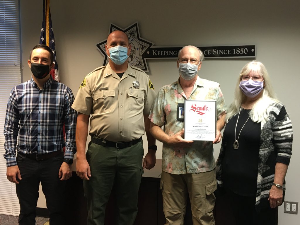 We want to congratulate @SDSOValleyCtr Senior Volunteer Patrol Administrator Alan Kirkpatrick. He was honored by the California State Senate for his tireless work helping to maintain the Sheriff's You Are Not Alone (YANA) Program. Learn more here: https://vimeo.com/415339856 .pic.twitter.com/XyvHoxNez0