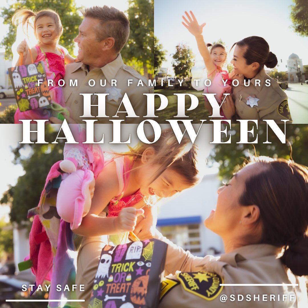 The #COVID19Pandemic spooked #Halloween. While the holiday looks different this year, it’s far from cancelled. Just like you, our @SDSheriff Deputy moms & dads are creating a new kind of #Halloween joy. We wanna share a photo of our families with yours to wish you a safe weekend.pic.twitter.com/c7YtJFD5ey