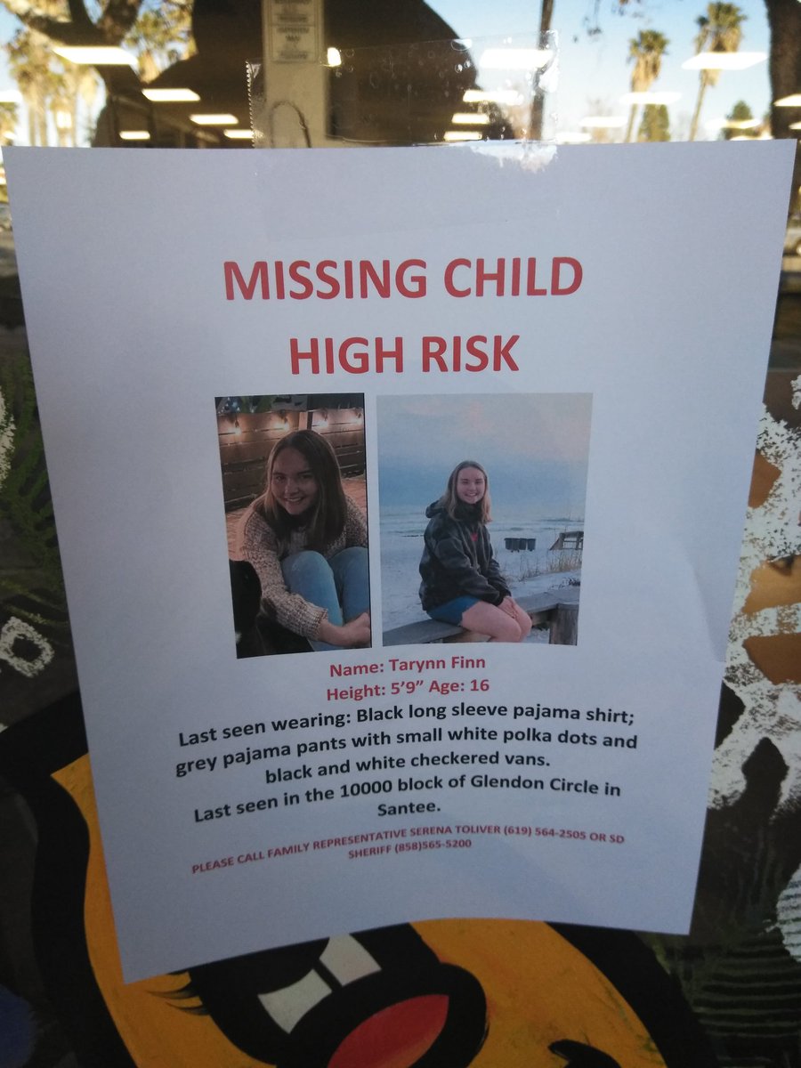 WATCH COMMANDER: @SDSheriff @SDSOSantee Updated clothing description for Tayrynn: last seen wearing hair in low ponytail, wearing black pajama top with gray pants, black or blue & white Vans slip-on shoes & carrying a black bag with polka dots. Please call 9-1-1 if seen.