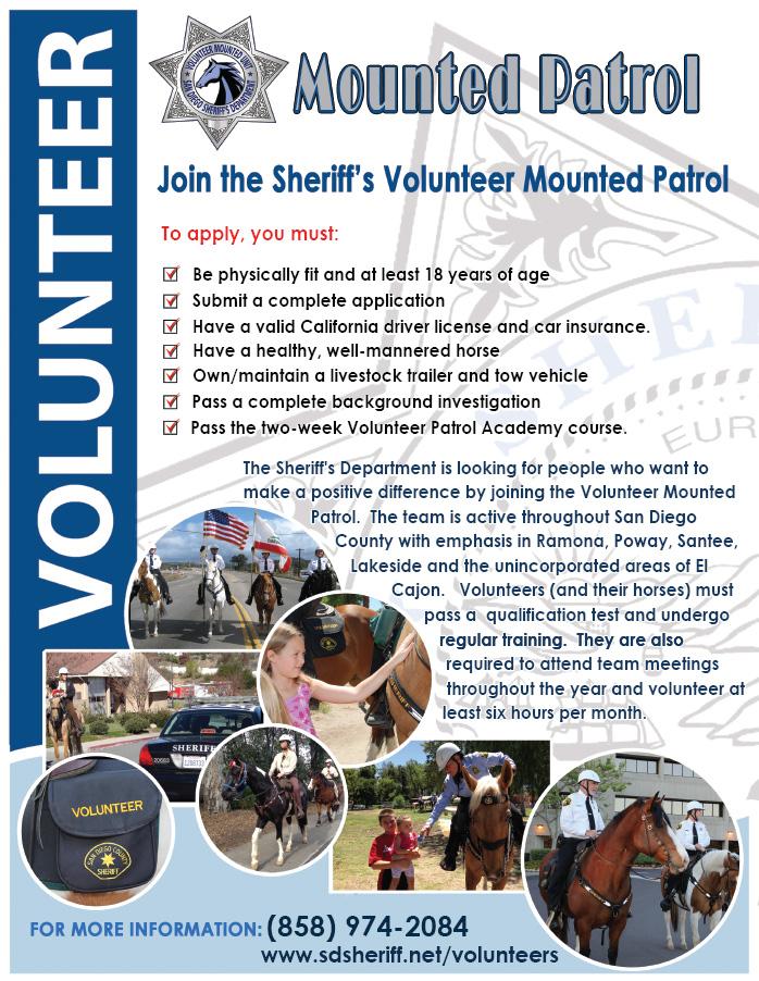 Join @SDSheriff Volunteer Mounted Patrol. Recruit meeting. 2/17. 6:30PM. Santee Station. http://goo.gl/7zVuDn pic.twitter.com/qLeUyHTxmW