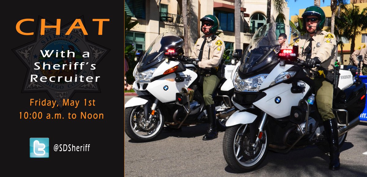 @SDSheriff Chat With A Recruiter is underway. Ask your questions until noon. Apply today at http://www.joinsdsheriff.net pic.twitter.com/tzNReR4xtx