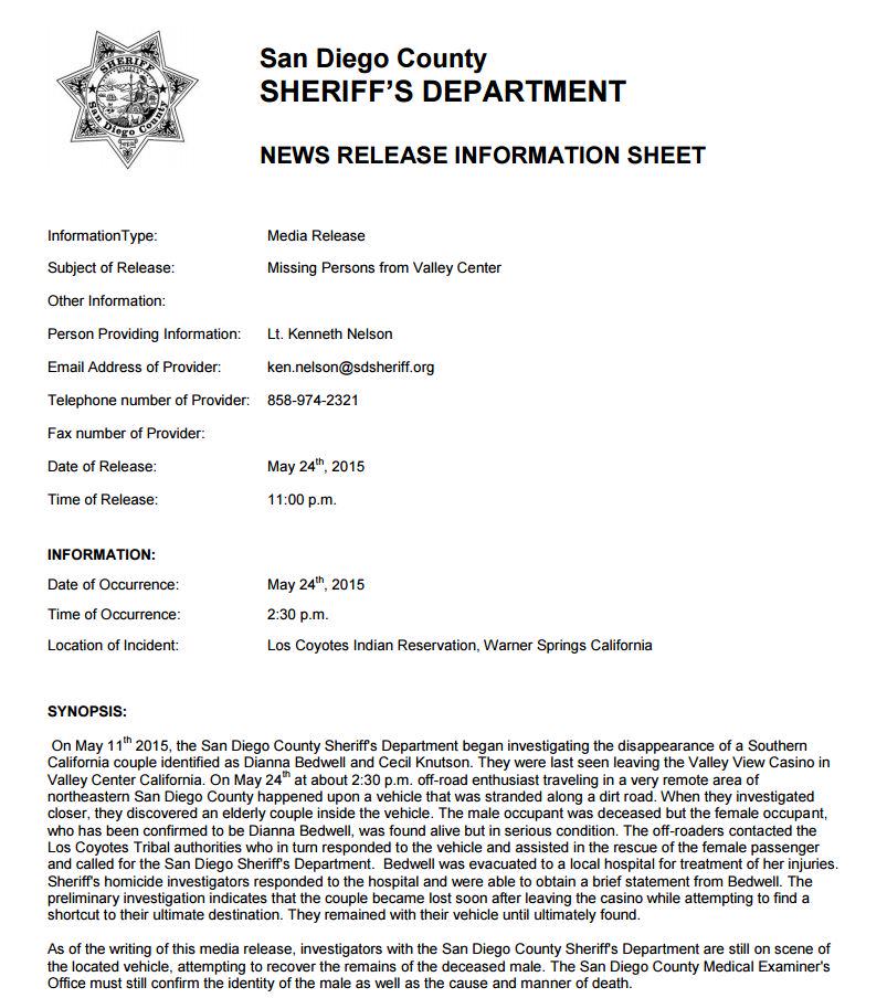 Orange County couple missing after leaving casino found in Warner Springs. News release: http://goo.gl/pj740Q .pic.twitter.com/o9uTqn0EJJ