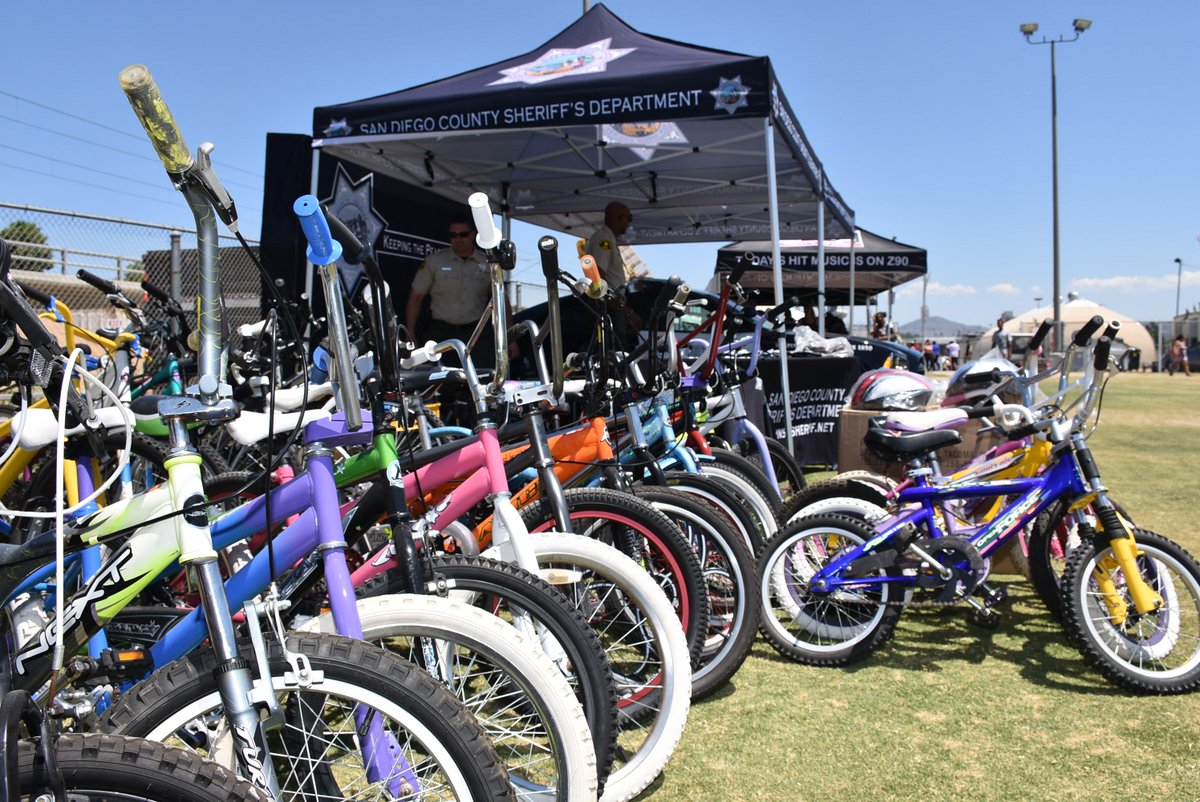 @SDSheriff Recruiters give away 26 free refurbished bicycles and new helmets at event for children battling cancer.pic.twitter.com/04FNRUYPjK