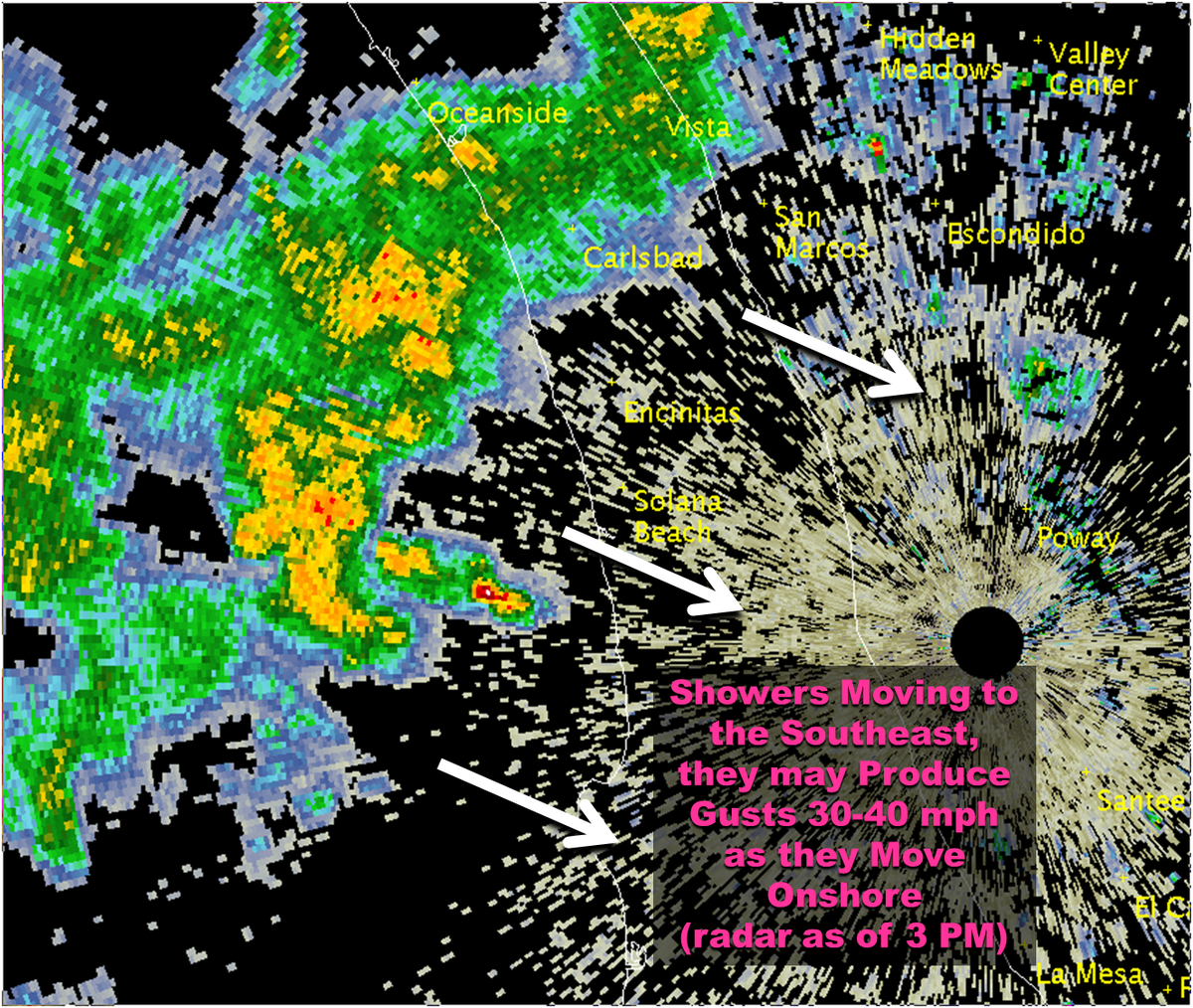 Another line of showers with gusty winds moving into the San Diego County coast. pic.twitter.com/pJbPGp6WfH