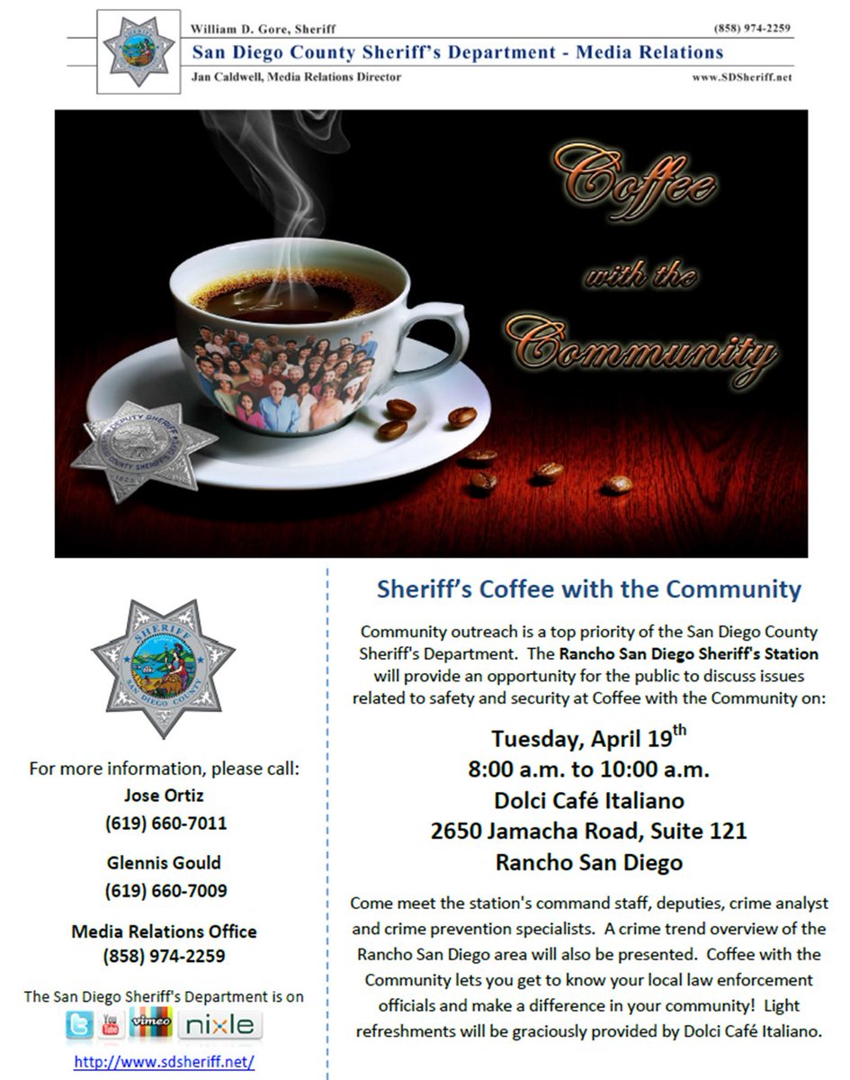 Save the date for our next Coffee with the Community in Rancho San Diego. TUESDAY, APRIL 19th at 8:00 a.m.pic.twitter.com/Ws9ZWRKjf7