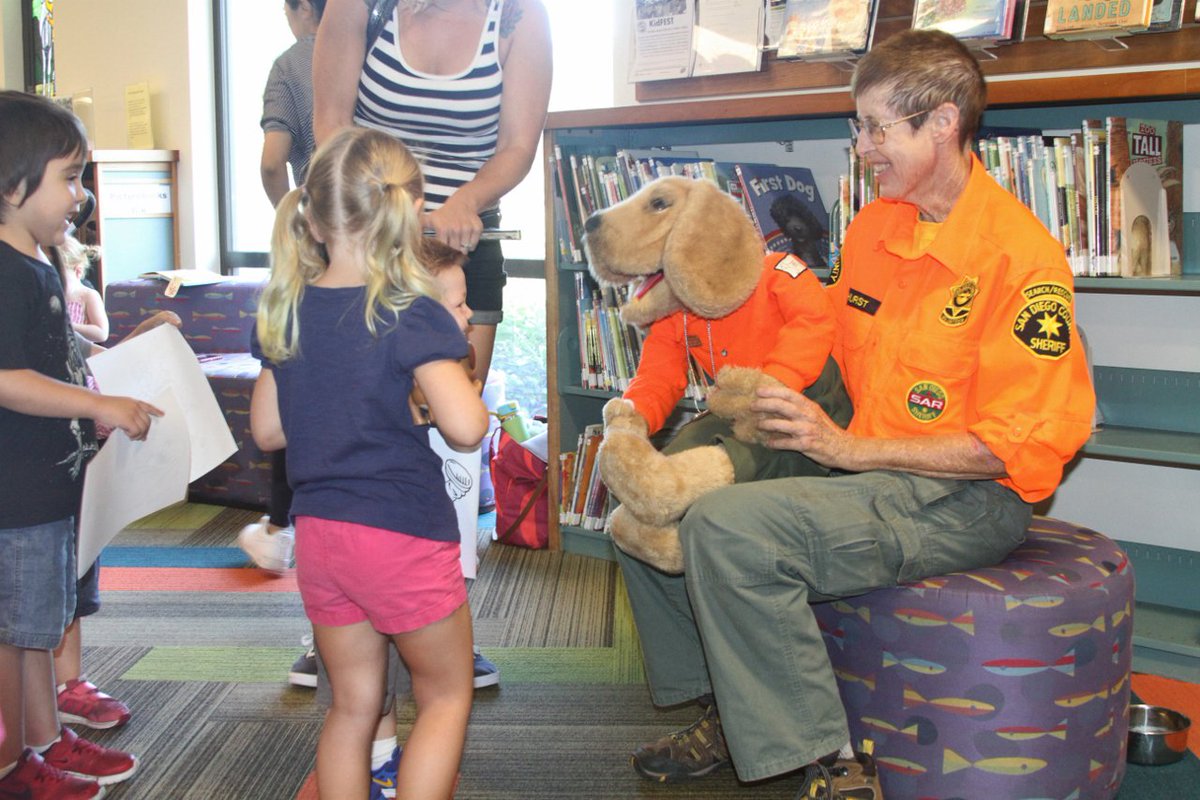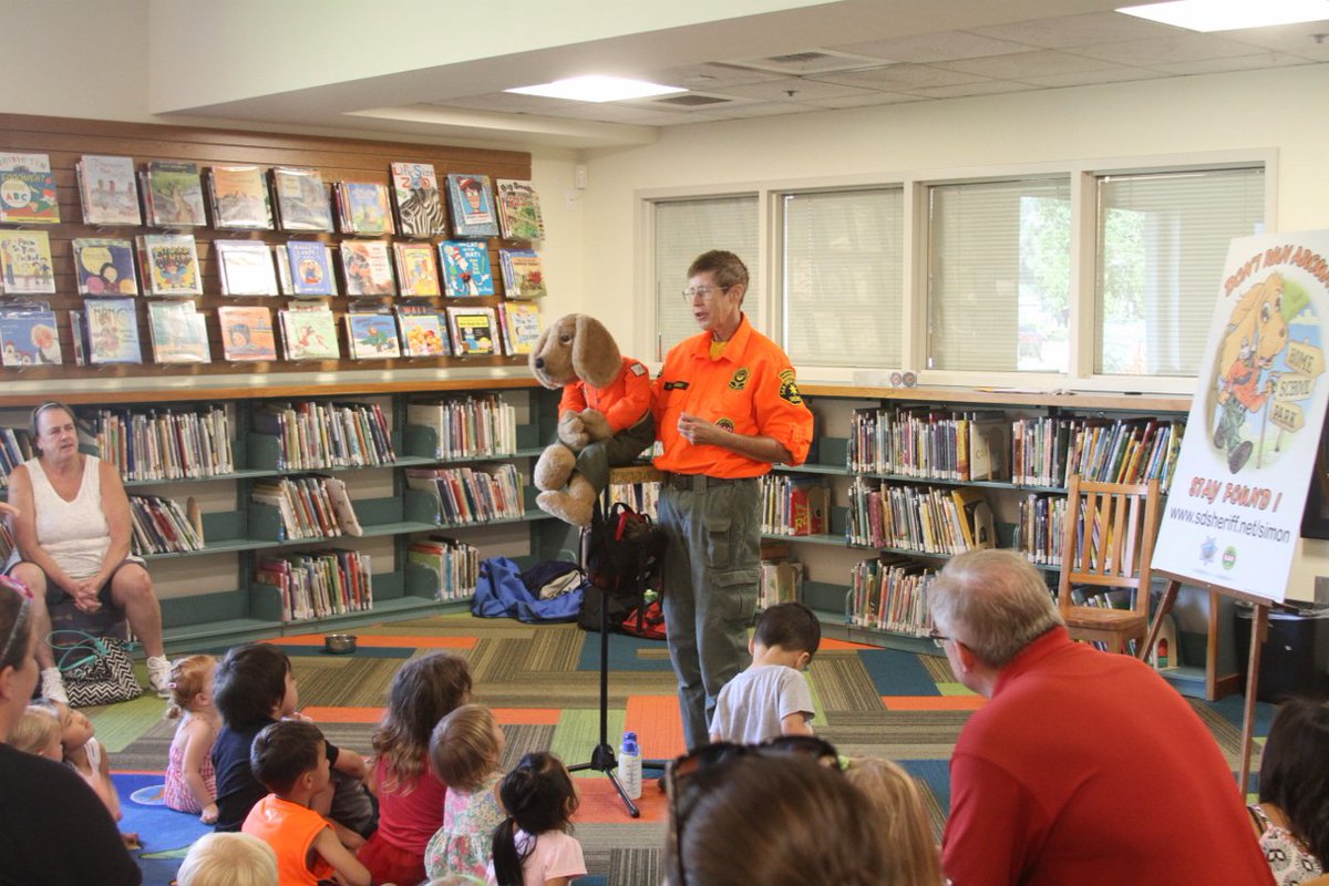 Simon the @SDSheriff Safety Bloodhound says thanks for stopping by the @cityofpoway Library. http://www.sdsheriff.net/simon pic.twitter.com/76m9TuKU5e
