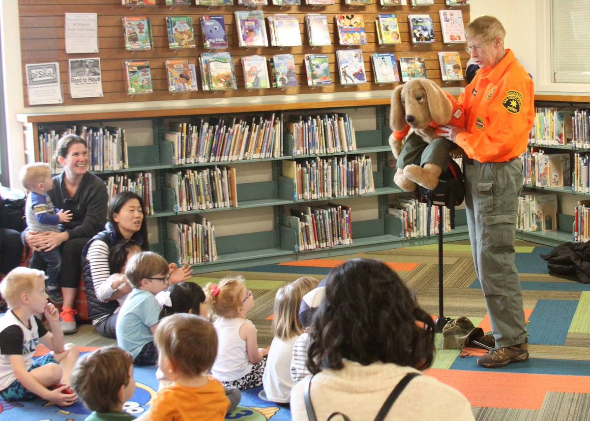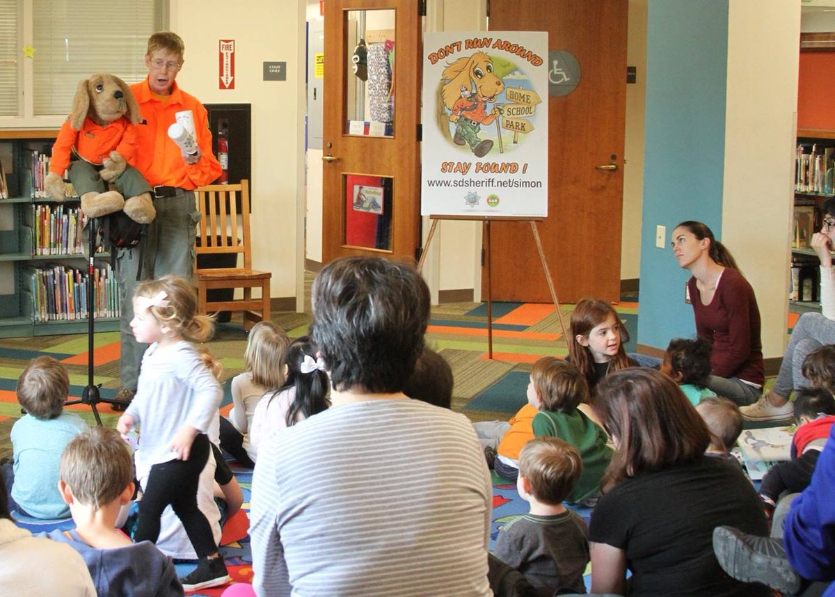 Simon the @SDSheriff Safety Bloodhound, Pam and Wishbone thank everyone who stopped by the @cityofpoway Library to learn how to stay safe.pic.twitter.com/O2dpYuTUY2