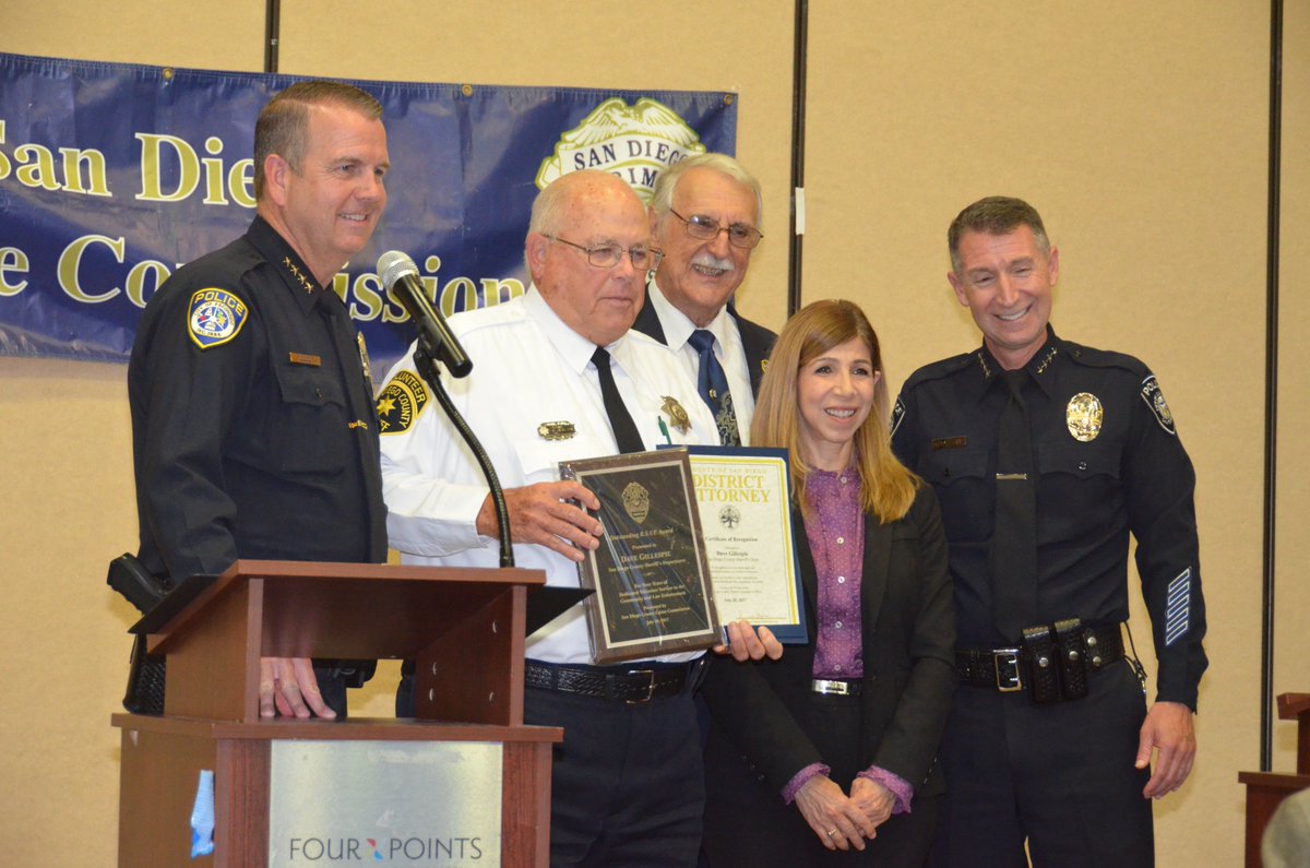 Sheriff Bill Gore: I am so proud of Dave Gillespie. San Diego Crime Commission honored him for 22 years of service as a Senior Volunteer.pic.twitter.com/HMsb6Wi0G0