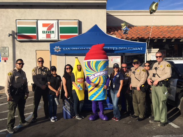 Join @SDSOSantee this afternoon for "Slurpee with the Santee Sheriff's Station." Get to know our deputies and enjoy a FREE Slurpee from 1:00 p.m. to 3:00 p.m. at 7-Eleven (9251 Carlton Hills Blvd.) in @CityofSantee. See you there! For more info, visit: http://nixle.us/9WRZK .pic.twitter.com/TYDuGE886g