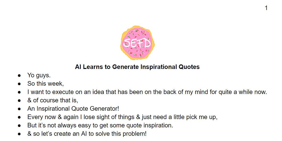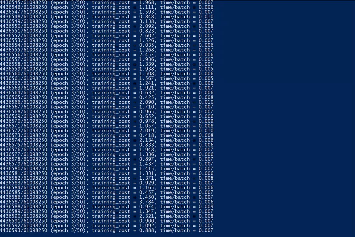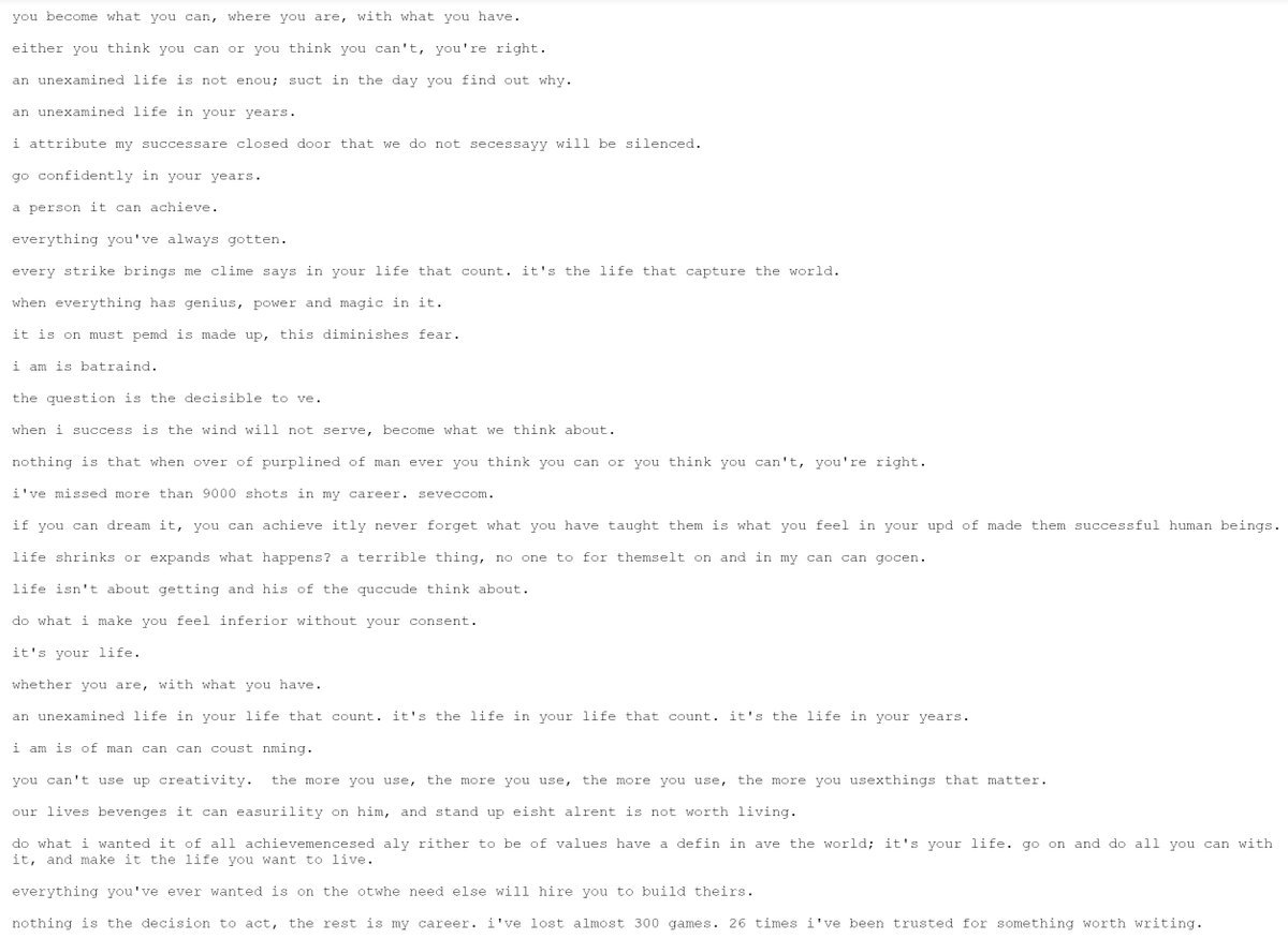 #100DaysOfMLCode PROGRESS! training for about 24 hours, average cost is a little over 1.0, its an Inspirational Quote generator, here is a sample with the currect cost