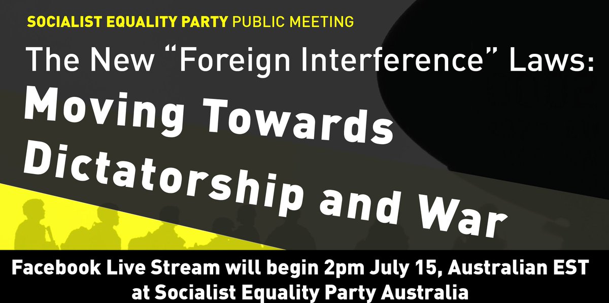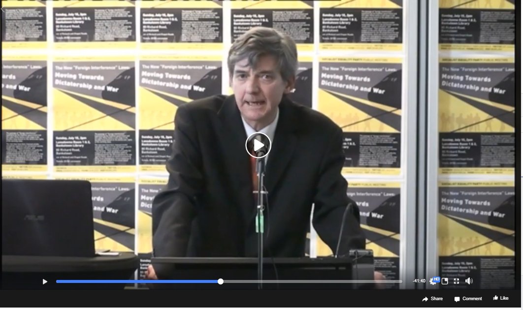 Watch the Facebook video of yesterday's SEP meeting opposing Australia's new "foreign interference" laws, which are a move towards