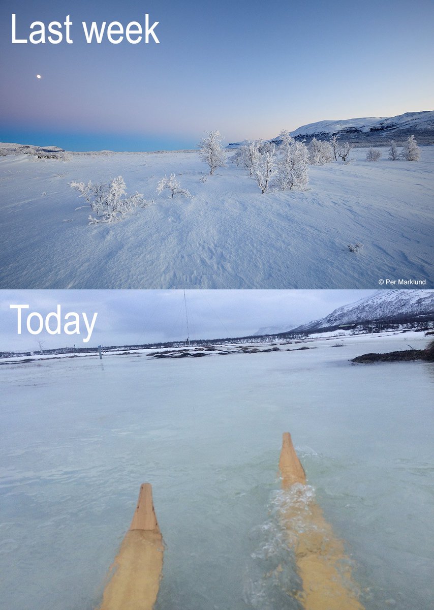 Close to -30°C last week seems distant today when skiing trough water, after a dramatic increase in air temperature.