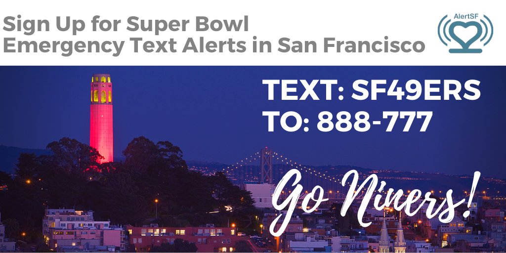 Text SF49ERS to 888-777 to receive text alerts about emergencies or major disruptions in San Francisco related to the Super Bowl on Sunday (2/2/20).pic.twitter.com/noFMo5FWql