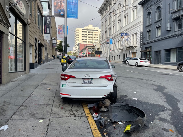 @SF311 @SFPD @SFPDTenderloin @SFPDChief @SF_DPH @SF_HSH @sfpublicworks @TLCBD @TenderloinLive @chesaboudin @SFDAOffice @SFMayorsOffice @LondonBreed @MattHaneySF @AaronPeskin @LowerPolk @LowerPolkCBD @LowerPolkTLC Totalled/abandoned vehicle mid block by Sutter/Polk. Damaged Meter.pic.twitter.com/WnCsHTOIZX