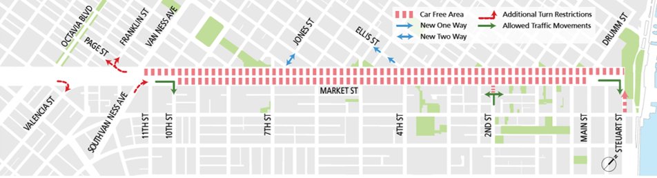 ***Attention Commuters*** Starting tomorrow, private cars are prohibited to turn onto or use Market Street in the car free zone: Westbound from Steuart St. to Van Ness Ave. & Eastbound from 10th to Main St.https://twitter.com/sfmta_muni/status/1222225386433662978 …
