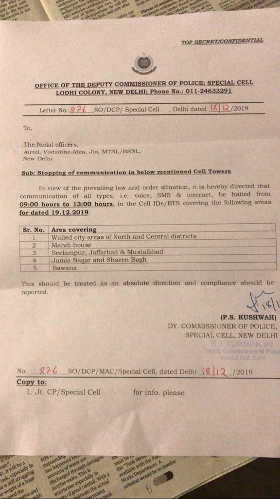 The Delhi Internet Shutdowns in December, 2019 was according to the