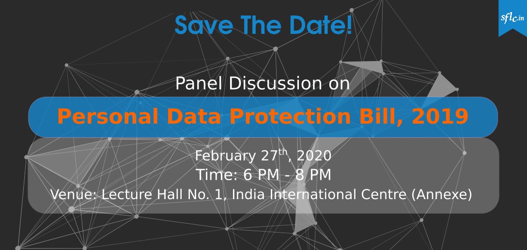 @SFLCin will be conducting a Panel Discussion on the Personal Data Protection Bill, 2019. The panel will consist of stakeholders from various sectors. Looking forward to your participation. https://forms.softwarefreedom.in/index.php?r=survey/index&sid=471567&lang=en …#PDPBill#EventAlert#PersonalDatapic.twitter.com/NIib5NOzY5