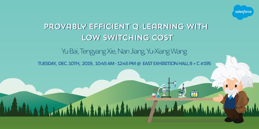 @NeurIPSConf , we'll be showcasing a paper we had submitted on "Provably Efficient Q-Learning with Low Efficient Cost". You don't want to miss this, it's coming up next! https://arxiv.org/abs/1905.12849 pic.twitter.com/lU7o5oIwQB
