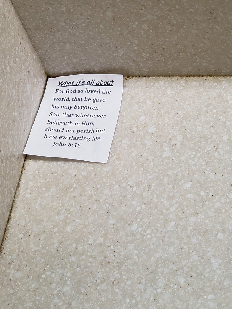 Found this little piece of treasure on the sink in a random bathroom. God is good (:pic.twitter.com/E2erXBD9Eg
