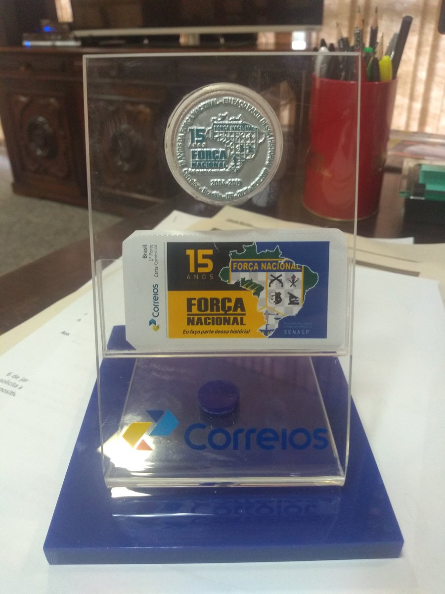 Selo comemorativo de 15 anos da Força Nacional de Segurança Pública do MJSP produzido pelos