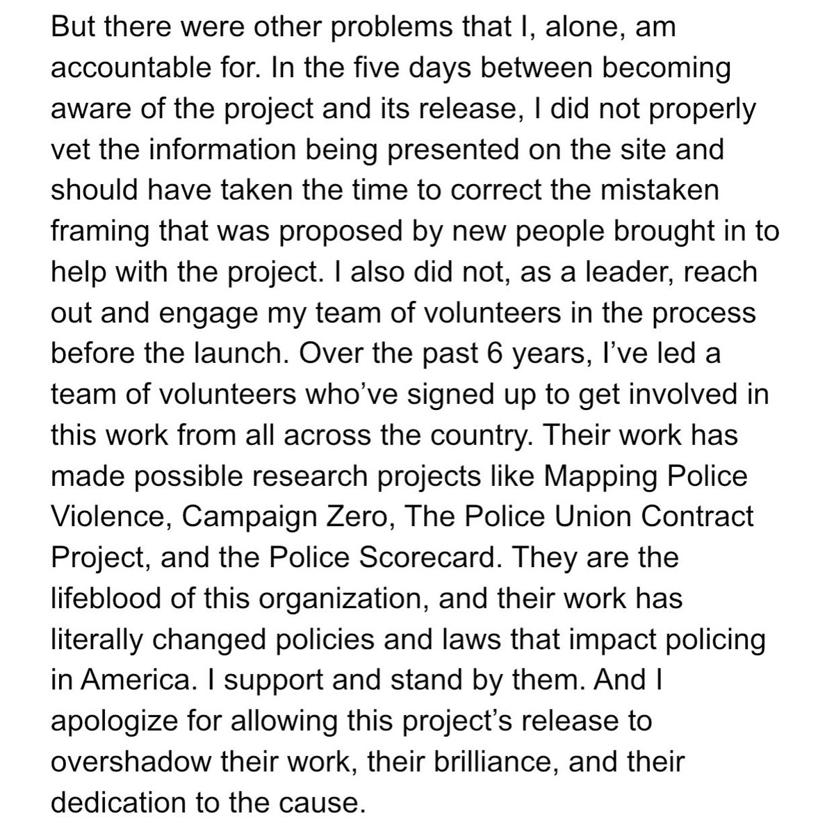By way of update, please read: Brittany N. Packnett Cunningham's decision to leave Campaign Zero: https://twitter.com/MsPackyetti/status/1270534642156949505 … Samuel Sinyangwe's statement:https://twitter.com/samswey/status/1270538875283398656 …