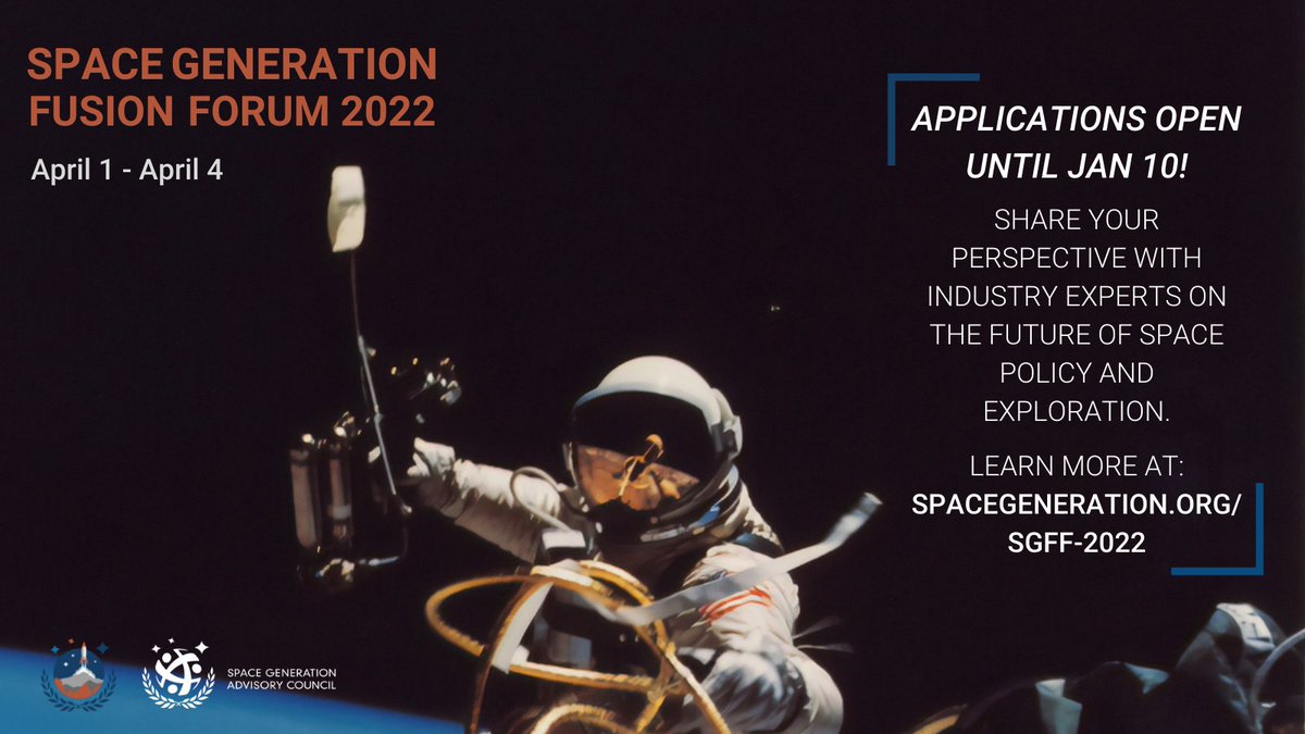 Apply to SGFF by January 10! Don't miss this amazing opportunity to meet people from all over the world who are as passionate about space as you are. Learn more at: http://spacegeneration.org/sgff-2022 pic.twitter.com/oEgBhCRzNt