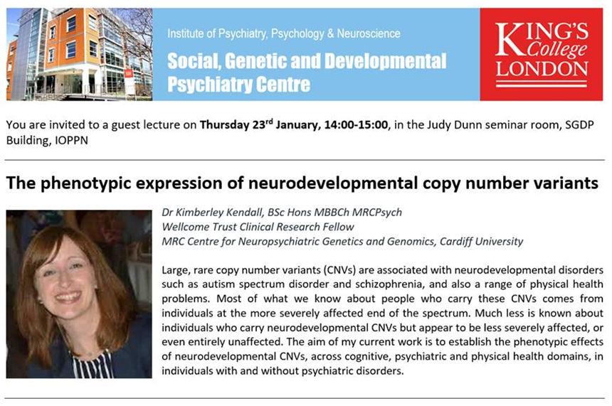 @SGDPCentreKCL guest lecture, delighted to welcome@DrKKendall from@MRCcardiff, talking on copy number variants in psychiatric traits. Let me know if you want to meet with Kim.pic.twitter.com/iynLVhE1ah