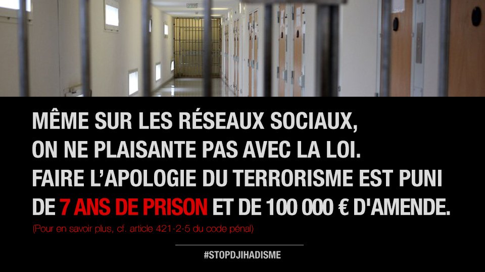 Rappel : faire l’apologie du terrorisme sur les réseaux sociaux est puni de 7 ans de prison