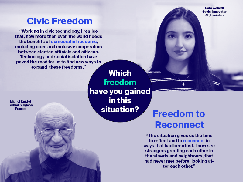 "In which areas have you actually gained freedom, as a result of the pandemic?” This is how @SaraWahedi and Michel Knittel responded. #freedomrevisited #dialoguecontinuespic.twitter.com/vZygFWAqH9