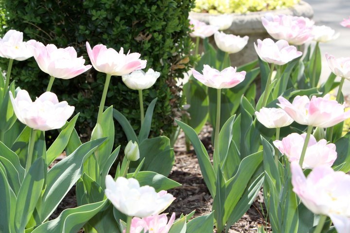 A planting of Angelique tulips from my Spring garden . These do very well in the coastal South. One of my favorites.