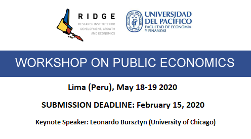 Join us in Lima for our Public Economics Workshop! Deadline: Feb 15 2020 Submission Link: http://bit.ly/2OdraTW We welcome work from all fields of economics such as public finance, behavioral and labor. More info: http://bit.ly/317UTmB pic.twitter.com/6oueZyetod