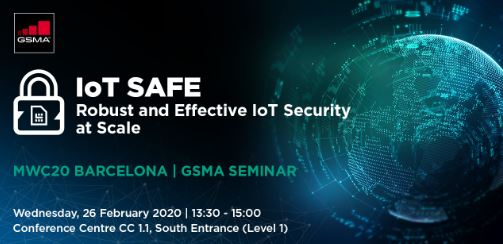 #MWC20 seminar, taking place on 26 February to find out how#IoT SAFE can be implemented to leverage the#SIM as a robust standardised hardware Root of Trust for IoT Solutions. https://bit.ly/2FWVNII pic.twitter.com/IrDRYfUD6N