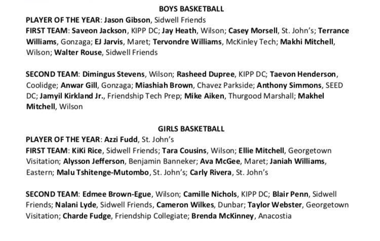 Congrats to all our Cadets who made the 2018-19 All-USA Washington D.C. Team!!