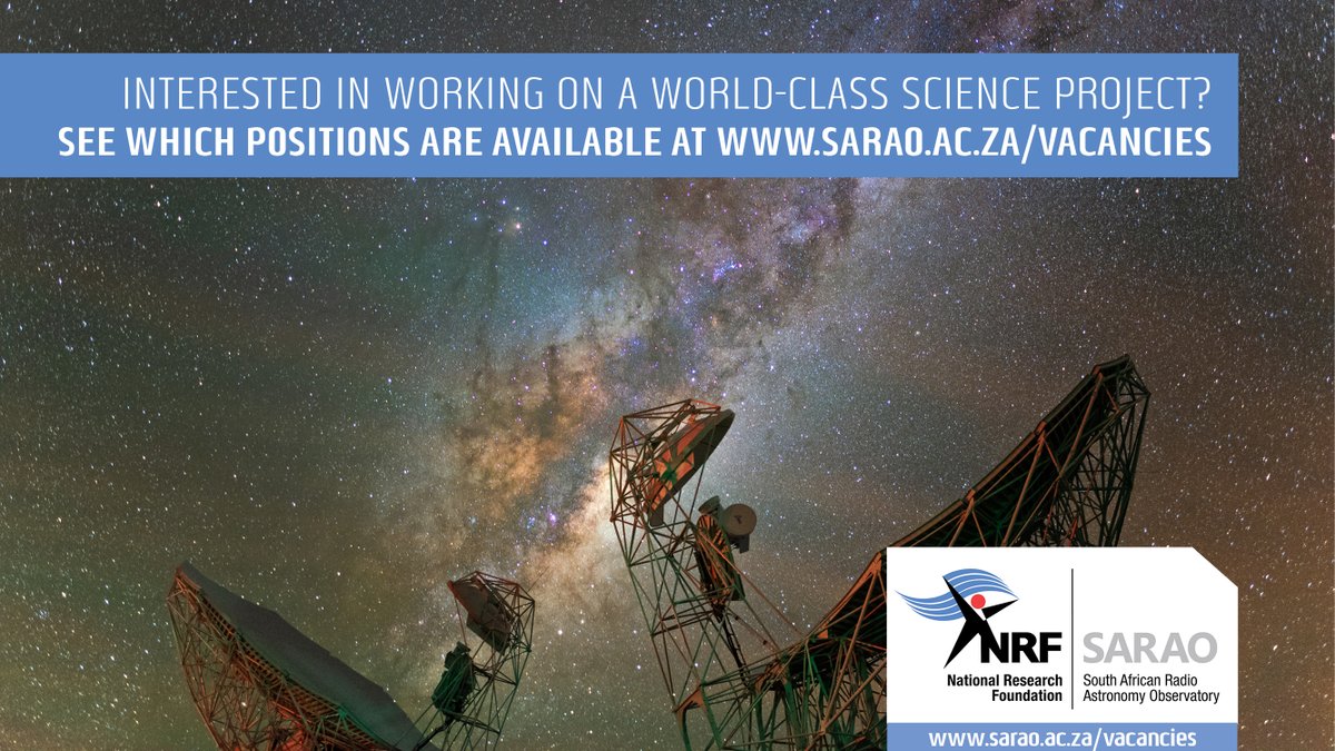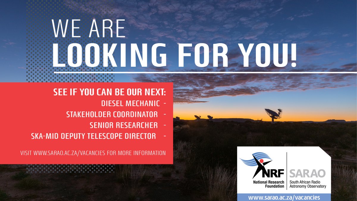SARAO has a position available for two SKA Mid – RFI & EMC Engineers. Location: Cape Town, Western Cape. Closing date: 08 December 2021. For more information or to apply, visit http://www.sarao.ac.za/vacancies pic.twitter.com/TlNNSwrjat