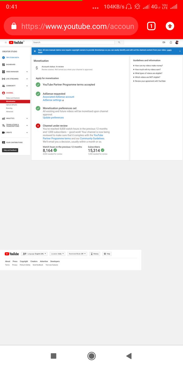 @YoutubeIndia @TeamYoutube @ytcreatorsindia hello team youtube my Channel cross 15k Subscribers and 8000 hrs Watchtime but Monetization not enabled One Month Complete My Channel Under Review.Please review my channel quickly as well as poss Channel link - https://www.youtube.com/channel/UCY1mE8pHEIZcDw-K2iZcqAQ …pic.twitter.com/Q88byhhwgS