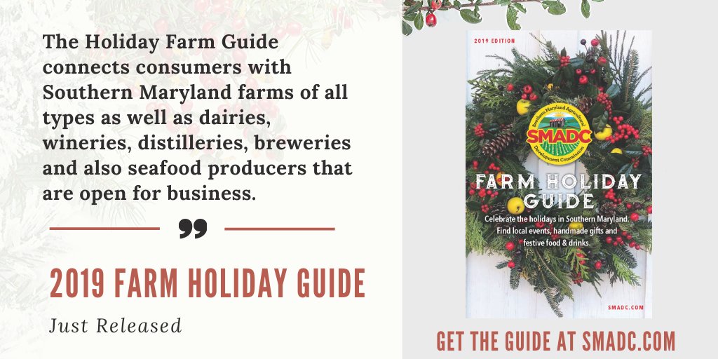 SMADC has released the 2019 edition of the Farm Holiday Guide, a free booklet featuring over 80 Southern Maryland farm products and events available during the holidays. Download now at http://bit.ly/36JrFgq .pic.twitter.com/pI7kVf9bWg