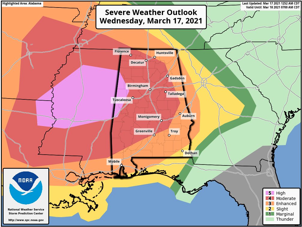 High risk (level 5/5) introduced today for parts of AL/MS/LA. New discussion later this morning!pic.twitter.com/GIa9JCD50W