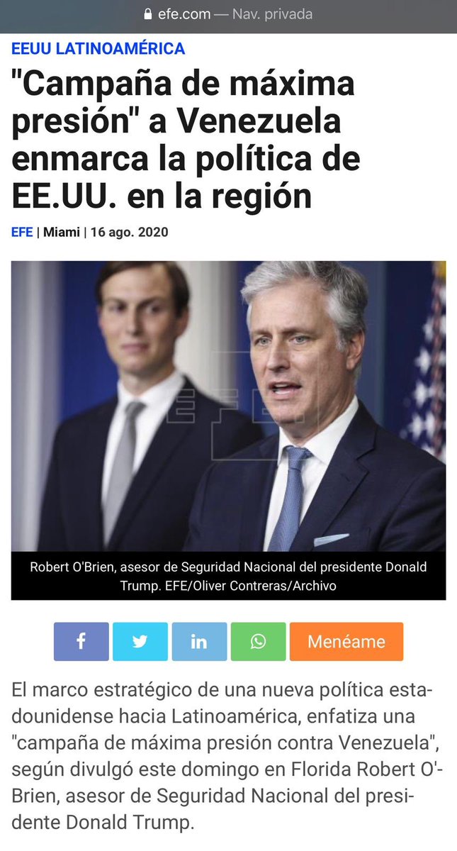 13/16La campaña de propaganda de guerra sobre venta de armas de Irán a Venezuela tiene como objetivo unificar el ataque contra los dos países. Elliott Abrams es el ejecutor de la estrategia criminal y la gira de Pompeo contra Venezuela incorpora a los países vecinos a la agresiónhttps://twitter.com/smoncada_ven/status/1302207955048312832 …