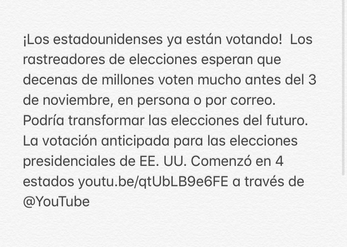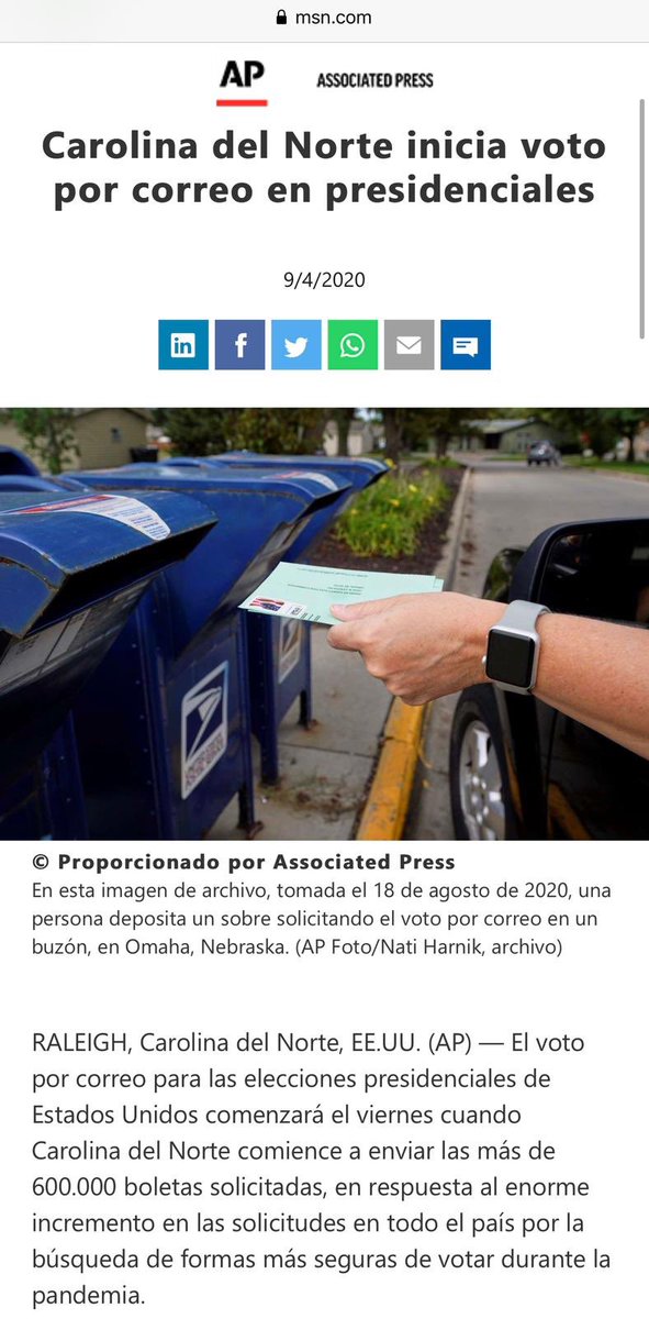 1/2 Elecciones en EEUU ya comenzaron por correo en Carolina del Norte, otros Estados se unirán pronto. Por la pandemia millones votarán por correo en los próximos días. Trump hoy pierde en las encuestas y está desesperado. ¡Es el momento de máxima alerta para el mundo!pic.twitter.com/YkHxFQpNQS