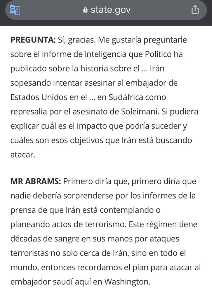 15/16 Esa operación de desinformación fue plantada en los medios por agentes de EEUU pero una vez que la niegan en Sudáfrica, Abrams dice que le preocupa “lo que aparece en los medios” como si no fuera producto de su gobierno. Así crean el ambiente para la agresión.pic.twitter.com/tyuDNdu0kT