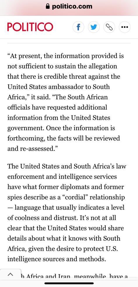 14/16 Parte de la propaganda de guerra es la fabricación de motivos como el supuesto atentado a la Embajadora de EEUU en Sudáfrica. Primero lo informaron fuentes de EEUU a medios de Washington y luego las agencias de inteligencia de Sudáfrica lo desconocieron.pic.twitter.com/H6LdWaGk4x