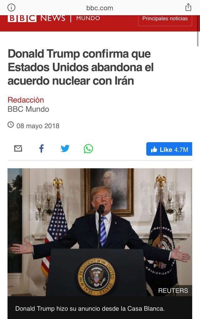 3/16 El Acuerdo Nuclear (conocido como JCPOA en inglés) es un logro histórico para la paz mundial y para la ONU. Todas las partes firmantes estaban satisfechas hasta que Trump decide desconocer el compromiso de su país y reimpone sanciones unilaterales en mayo de 2018.pic.twitter.com/erYjmDwQLt