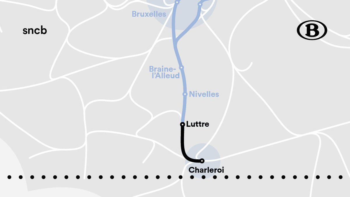 La circulation est actuellement interrompue entre Luttre et Charleroi-Sud.