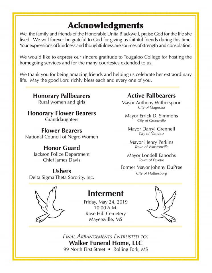 Celebration of Life: The Honorable Unita Blackwell March 18, 1933 - May 13, 2019pic.twitter.com/x0ILxRbZzp