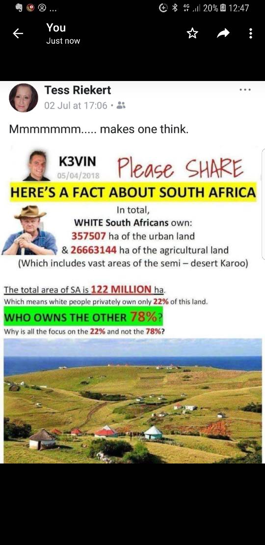 Some awkward facts for the ANC & SQUIRREL Ramaphosa about white land ownership. What about the 78%?pic.twitter.com/M0wpKEYuka