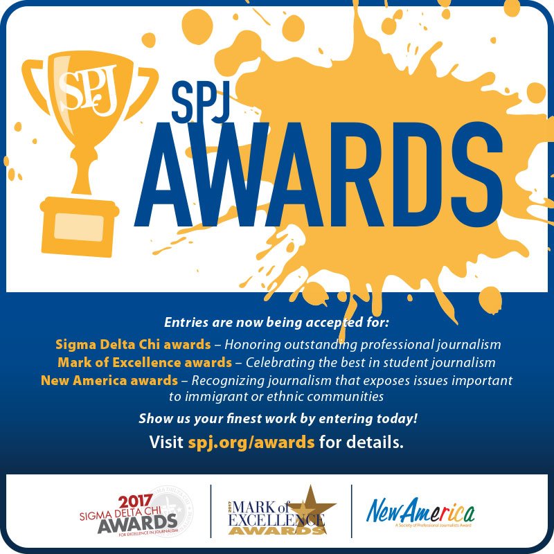 #SDXAwards, honoring outstanding professional journalism, and#MOEAwards, celebrating the best in student journalism. Show us your finest work by entering today! http://spj.org/awards pic.twitter.com/PFqIRXwm8m